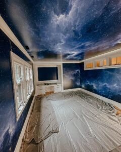 Expertise and Precision: Ceiling wallpaper installation requires a high level of expertise and precision. Professionals have the skills and experience to apply your wallpaper smoothly and accurately. DIY attempts often result in misalignment, air bubbles, or unsightly seams, which can detract from the overall appearance of your ceiling.